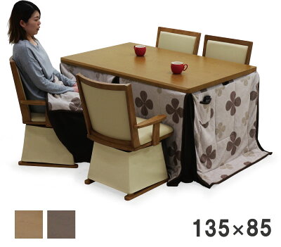 こたつ ダイニングこたつ 6点セット こたつテーブル ハイタイプ 長方形 135×85cm 4人掛け ダイニングこたつセット 肘付き 回転椅子 高脚こたつ 家具調こたつ 布団セット ハロゲンヒーター 手元コントローラー ベージュ 花柄 ブラウン ナチュラル 炬燵 モダン